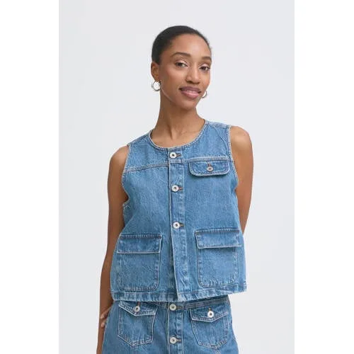ICHI gilet medium blue denim