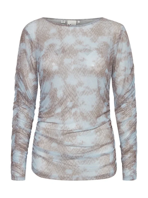 Design: Gevoerde zoom/rand, Rechte zoom, Overcut schouder; Materiaal: Gerecycled materiaal; Halstype: Ronde hals; Details: Gedrapeerd; Extra's: Licht transparant, All-over patroon; Pasvorm: Normale pasvorm; Armlengte: Lange mouw; Lengte: Normale lengte