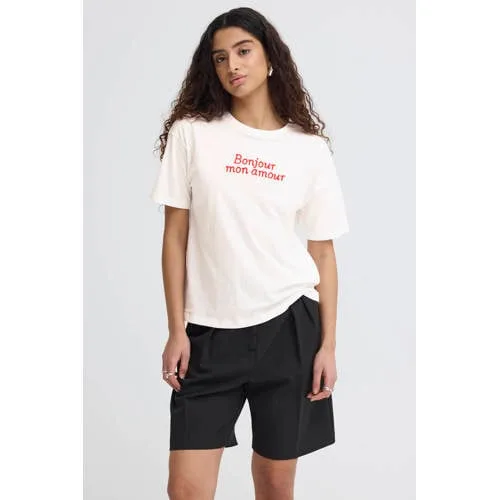 Voor elke dag waarop je iets makkelijks en toch verzorgd wilt dragen, is dit wit T-shirt van ICHI een veelzijdige basis. Het model heeft een rechte pasvorm, korte rechte mouwen en een ronde hals, waardoor het soepel langs je lichaam valt zonder te strak te zitten. De frisse witte kleur en de printopdruk geven je outfit extra karakter, terwijl de stijl eenvoudig blijft.Details die het verschil maken Gemaakt van 100% katoen, voelt zacht aan op de huid en is prettig om de hele dag te dragen Rechtvallend model dat niet aftekent en mooi recht naar beneden valt Korte mouwen met een rechte snit voor een rustige uitstraling Ronde hals die makkelijk combineert met kettinkjes of een vest Printopdruk aan de voorzijde die zorgt voor extra detail in je outfit Onderdeel van de 'Daily' collectie, geschikt voor alledaagse outfitsVoor dagelijkse combinatiesDit T-shirt past goed bij een jeans, een chino of een korte broek. Onder een blazer of een open blouse komt de ronde hals mooi uit en blijft de print zichtbaar. Geschikt voor werk, een dagje stad of een ontspannen weekend.ICHI als stijlpartnerICHI is een Deens modemerk dat bekendstaat om toegankelijke stijlen met een moderne twist. De collecties sluiten aan op het dagelijks leven, met kleding die makkelijk te combineren is. Dit T-shirt past goed binnen die stijl en vormt een basisstuk in je garderobe.Een licht T-shirt dat je gemakkelijk op verschillende dagen draagt.