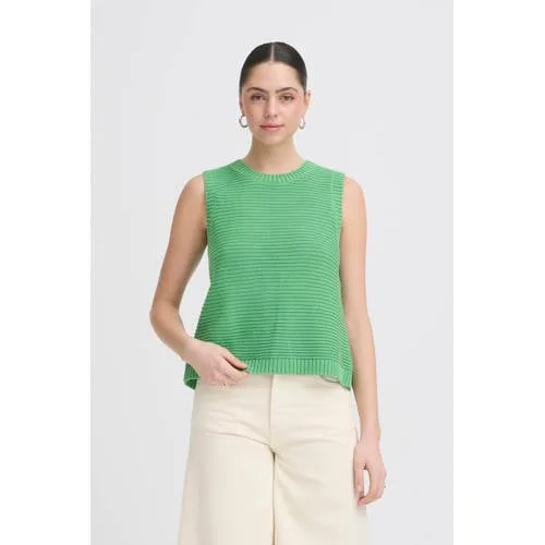 Voor een lichte, comfortabele laag kies je deze ICHI gebreide top van katoen in fris groen. De top is mouwloos, heeft een ronde hals en is gemaakt van 100% katoen, wat zacht en ademend aanvoelt op de huid. De subtiele details, zoals het opengewerkte accent met strikje, geven een verfijnde uitstraling zonder dat het te druk wordt. Ideaal voor het voorjaar en voor elke dag waarop je net iets meer aandacht aan je outfit wilt geven.Verfijnde details voor elke dag Mouwloze gebreide top, prettig voor de warmere seizoenen Gemaakt van 100% katoen voor een zachte en luchtige touch Groene, effen kleur die makkelijk te combineren is Ronde hals die mooi aansluit zonder strak te voelen Geribde boorden voor een nette afwerking en goede pasvorm Open detail met strikje als subtiel accent aan de bovenkant Geen zakken, waardoor de look rustig en clean blijftZo draag je deze groene topDeze top past goed bij een lichte jeans of een soepelvallende broek voor een ontspannen dagelijkse look. Onder een open blouse of vest komt het open detail met strikje mooi uit. In de lente combineer je de top met een rok en sneakers voor een comfortabele outfit die de hele dag door prettig blijft aanvoelen.ICHI: Scandinavische eenvoud in je garderobeICHI staat bekend om moderne collecties met een toegankelijke stijl. De ontwerpen hebben vaak een rustige basis met doordachte details, zodat je de items makkelijk combineert met wat je al in de kast hebt. Met deze top haal je een betrouwbaar kledingstuk in huis dat goed past bij een dagelijkse, eigentijdse garderobe.Een fijne basis voor talloze outfits, van vroege lentedagen tot zwoele zomeravonden.