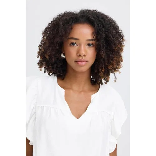 De Blouse Hetta van Ichi is een stijlvolle dames blouse met een losse pasvorm en een vrouwelijke V-hals. De korte mouwen met een unieke plooidetail geven een speels accent. Ideaal voor een casual gelegenheid, gemaakt van lichte stof voor ultiem draagcomfort.