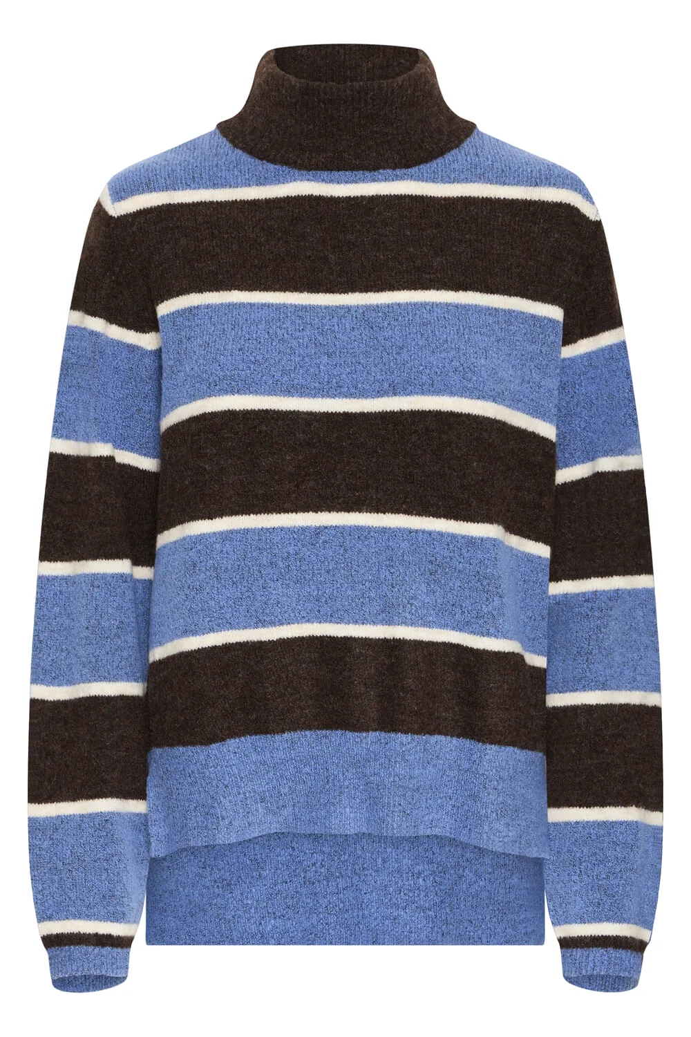 Trui Edeen van Ichi is een casual trui met een opstaande kraag en een col. De trui heeft een streeppatroon en een regular, losse pasvorm. Lange mouwen met ribgebreide mouwboorden maken deze trui perfect voor alledaagse gelegenheden.