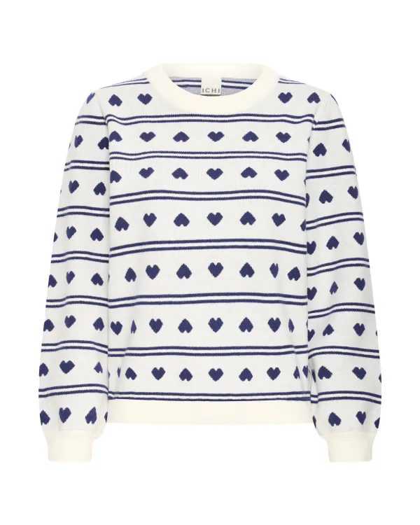 ICHI Trui ‘IHBrielle’ marine / wit