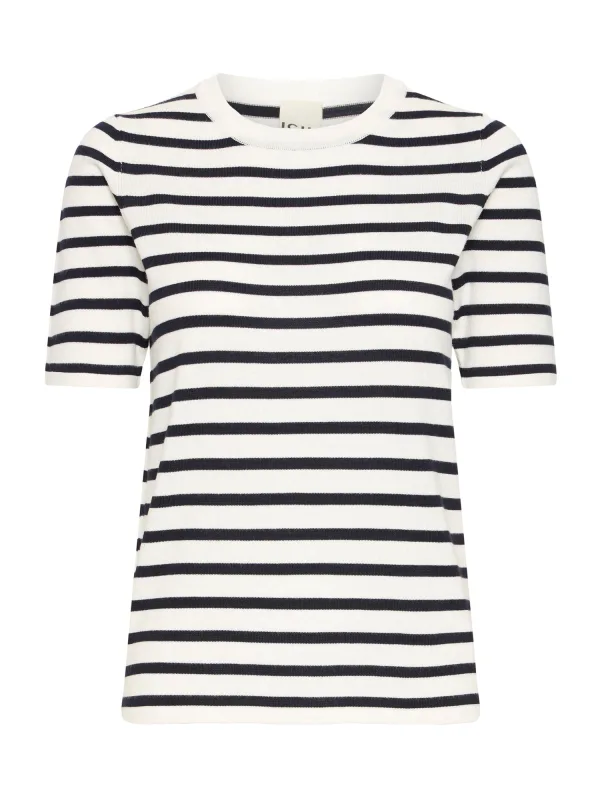 Design: Gevoerde zoom/rand, Geribbelde kraag; Materiaal: Knitwear; Halstype: Ronde hals; Motief: Gestreept; Extra's: All-over patroon, Voelt zacht aan; Pasvorm: Normale pasvorm; Armlengte: Halve mouw; Lengte: Normale lengte