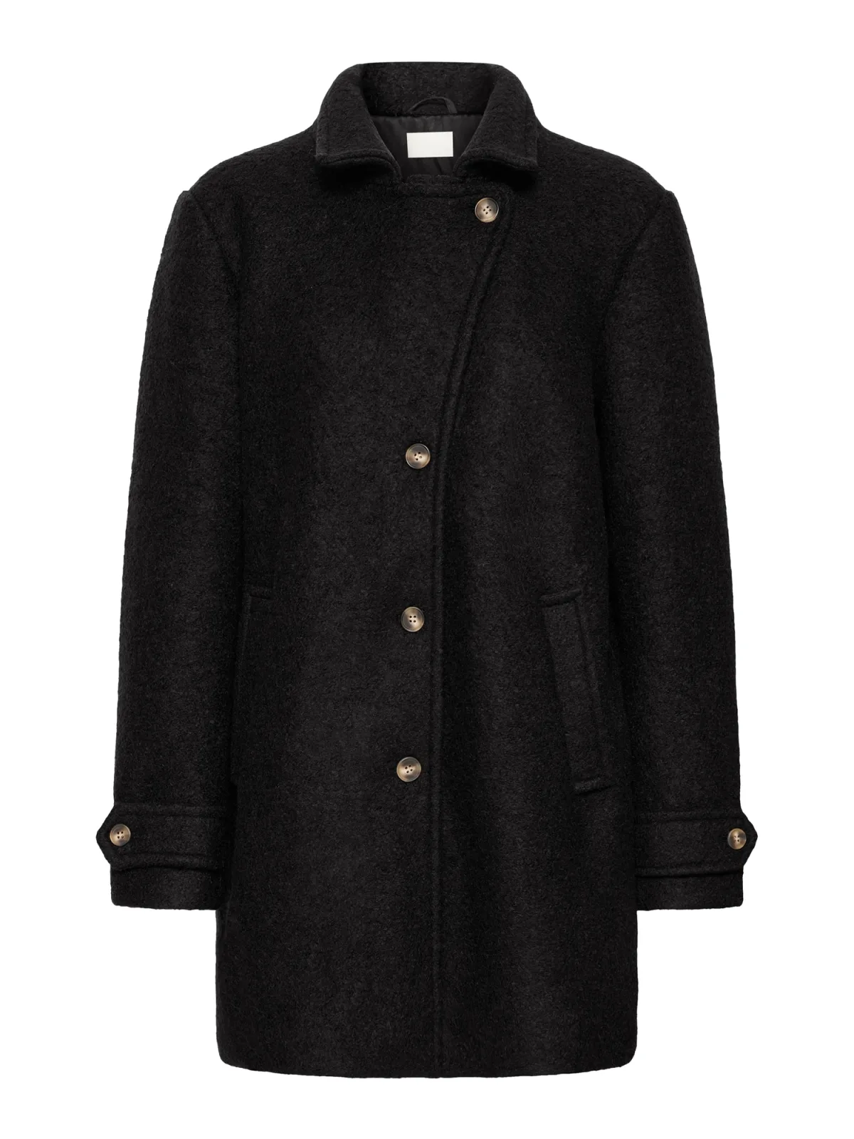Type mantel: Klassieke mantel; Design: Rechte zoom, Turn-down kraag, Zakken aan de zijkant; Type sluiting: Knoopsluiting; Voering: Licht gevoerd; Materiaal: Wol; Motief: Mélange; Extra's: Zware stof, Met textuur; Pasvorm: Normale pasvorm; Lengte: Korte pasvorm