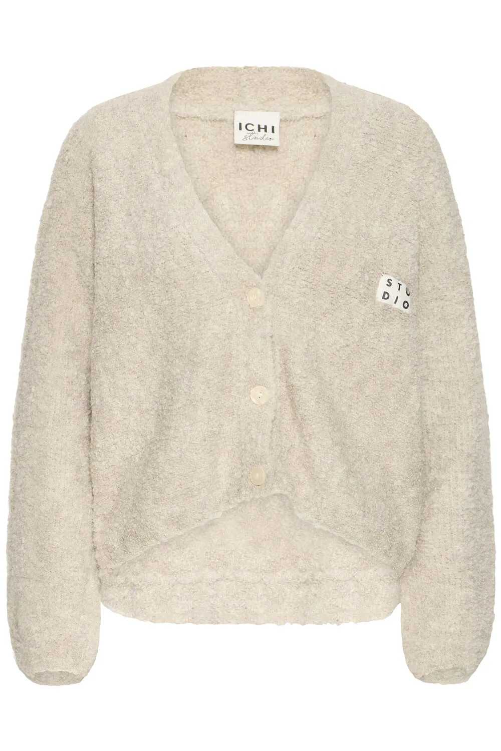 Dit damescardigan heeft een ontspannen pasvorm, een zachte textuur, een V-hals en afgeplatte schouders. Met een knoopsluiting en een subtiele detail op de borst, perfect om te layeren en dagelijks te dragen.