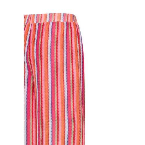 De Broek Libella van Ichi is een dames lange broek met een bohemian en casual stijl. Deze broek heeft een elastische taille en wijde pijpen, wat zorgt voor een comfortabele, losse pasvorm. Het kleurrijke streeppatroon maakt het een echte eyecatcher.