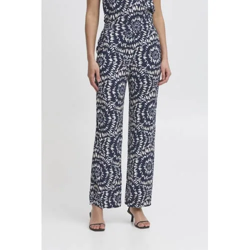 ICHI wide leg regular waist casual broek donkerblauw