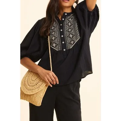 ICode Black Embroidered Bib Blouse Black Prijzen