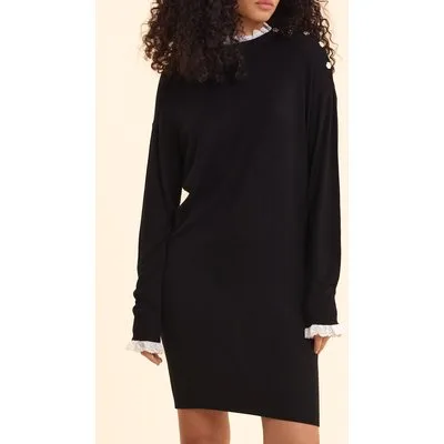 ICode Black Knit Dress, Eyelet Embroidery Details Black Prijzen