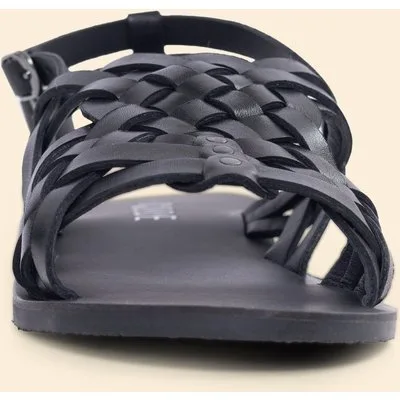 ICode Black Leather Sandals With Braided Straps Black Prijzen
