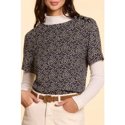 ICode Black Top With Micro Floral-leopard Print Prijzen