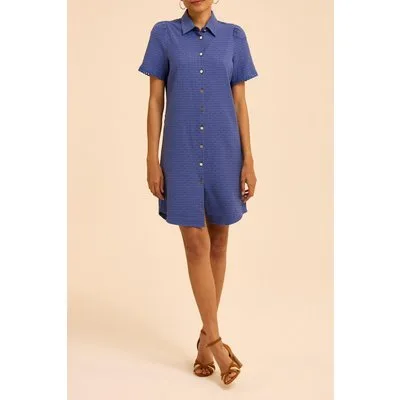 ICode Blue Decorative Jacquard Shirt Dress Sapphire Blue Prijzen