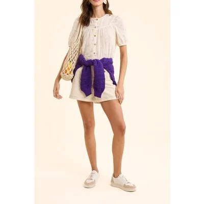 ICode Ecru Jacquard T-shirt With Palm Tree Embroidery Ecru Prijzen