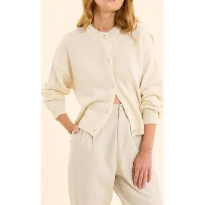 ICode Ecru Knit Cardigan With Palm Trees On Back Off-white Prijzen