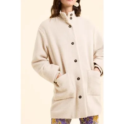 ICode Ecru Sherpa Stand-up Collar Coat Ecru