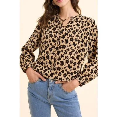 ICode Floral Leo Print Beige Blouse Ecru
