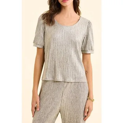 ICode Grey Pleated Top With Decorative Gold Stripes Gold