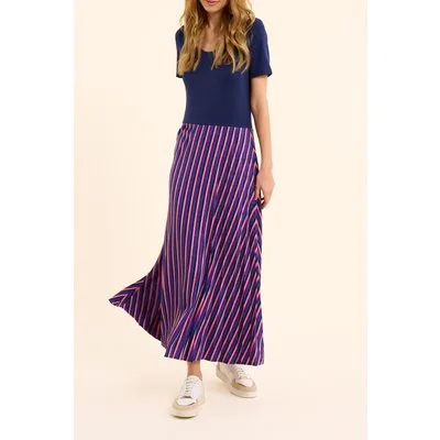 ICode Lurex Striped Pleated Bi-material Maxi Dress Violine