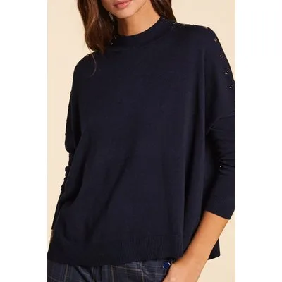 ICode Navy Cape Knit Sweater Decorative Buttons Marine