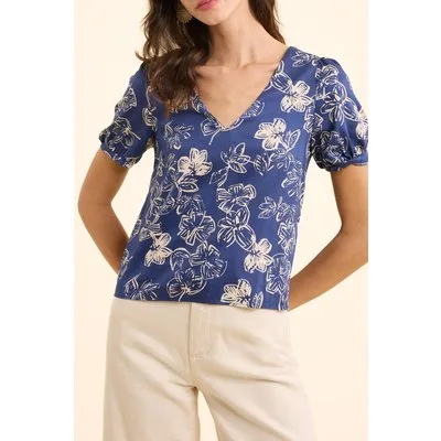 ICode Navy Top With Xl Floral Print And Bow On Back Indigo Prijzen