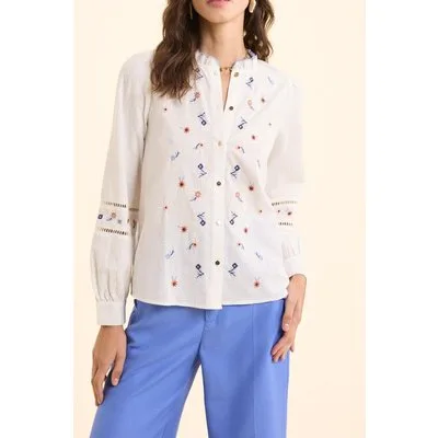 ICode Off-white Blouse Embroidered With Flowers Multico Prijzen