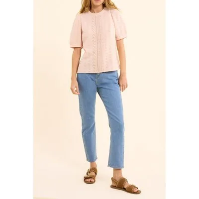 ICode Pink Top With Broderie Anglaise And Lace Pink
