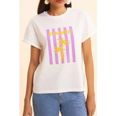 ICode White T-shirt Palm Trees On Stripes Palm Tree Prijzen