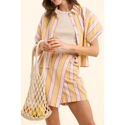 ICode Yellow Striped Short-sleeved Shirt Yellow