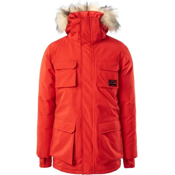 Materiaal: 100% polyester. Voering: Gewatteerd. Vulling: 140gsm. Ontwerp: Logo. Stoftechnologie: Ademend, Duurzaam, DWR Finish, Isolerend, Waterafstotend, Winddicht. Kinbeschermer, Duimgaten, YKK Ritssluiting. Halslijn: Kap, staande kraag. Mouwtype: Met lange mouwen. Kapkenmerken: Verstelbaar, Afneembare kap, Afwerking van imitatiebont. Zakken: 2 borstzakken, 2 voorzakken, mobiele telefoon, klepsluiting, 2 zijzakken, 1 binnenzak, rits. Sluiting: Volledige rits, Stormflap, Stud. 5000g/m²/24hrs. Waterdichte classificatie: 5000mm.