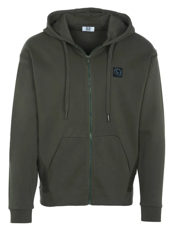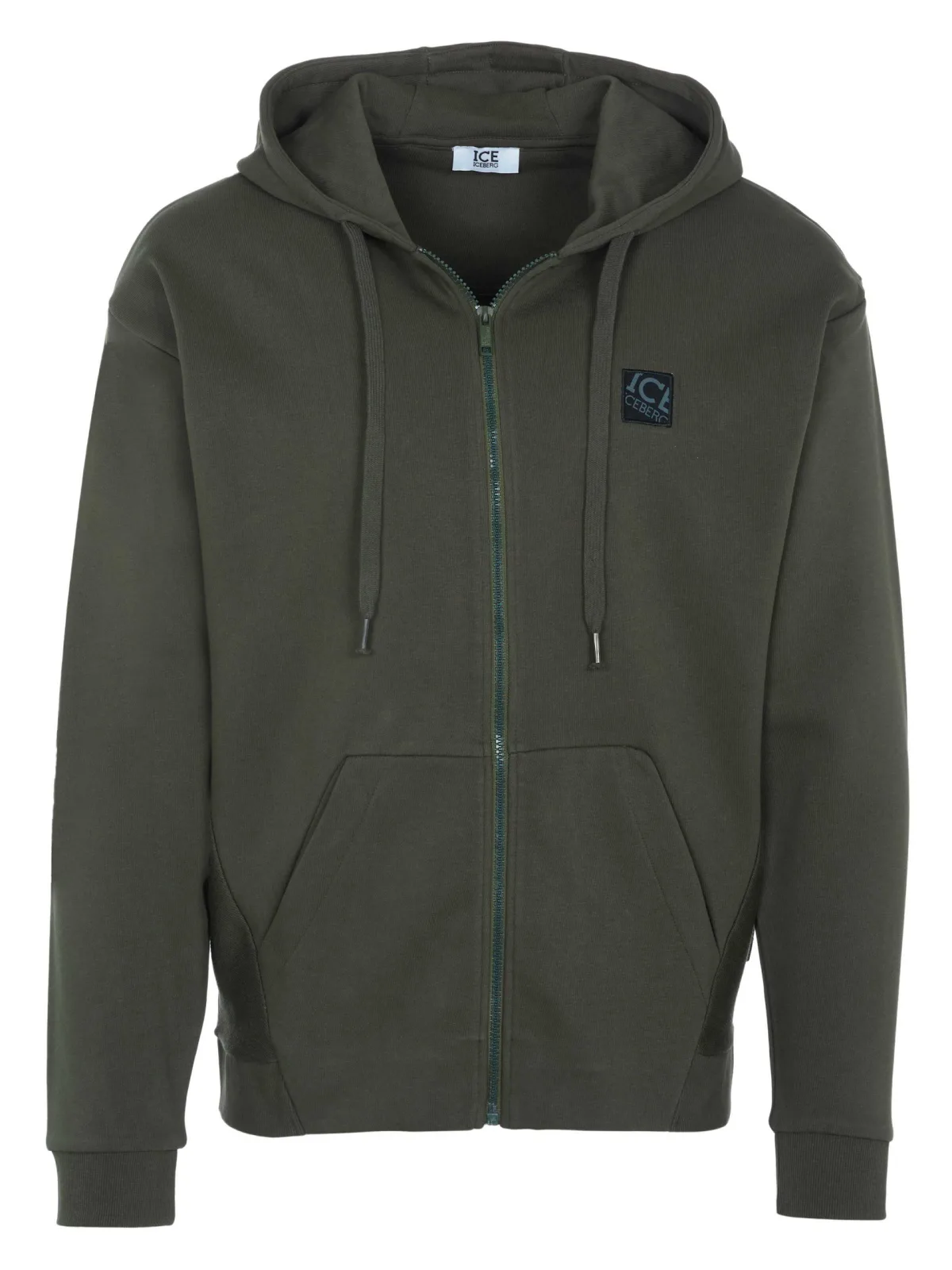 80% katoen, 20% polyester; IJsberg trui; Model: S1M-E04163415334; Hoogwaardige afwerking; Zachte katoenmix; Capuchon met trekkoord en trekkoord; Rits; Twee zakken aan de voorkant; Elastische zoom; Details van het Iceberg-logo