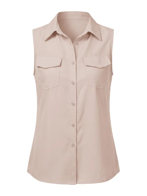 Blouse type: Klassieke blouse; Design: Borstzak; Type sluiting: Knoopsluiting; Motief: Effen; Kraag: Kentkraag; Details: Plooien; Extra's: Op staal naden; Pasvorm: Normale pasvorm; Armlengte: Mouwloos; Lengte: Normale lengte