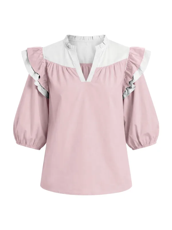 Blouse type: Blouseshirt; Design: Gevoerde zoom/rand, Rechte zoom, Elastische inzetstukken; Materiaal: Katoen; Motief: Color-Blocking; Kraag: Tuniek kraag; Details: Ruches, Gedrapeerd; Extra's: Voelt zacht aan; Pasvorm: Losse pasvorm; Armlengte: Halve mouw; Lengte: Normale lengte