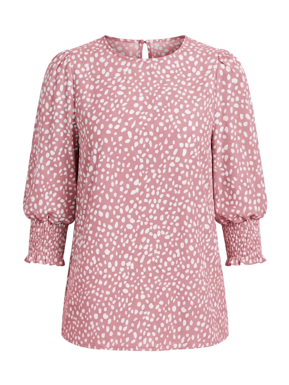 Blouse type: Blouseshirt; Design: Pofmouwen; Type sluiting: Knoopsluiting; Motief: Dierenprint; Kraag: Zonder kraag; Details: Cut-outs, Ruches, Gedrapeerd; Extra's: All-over patroon; Pasvorm: Normale pasvorm; Armlengte: Driekwart mouw; Lengte: Normale lengte
