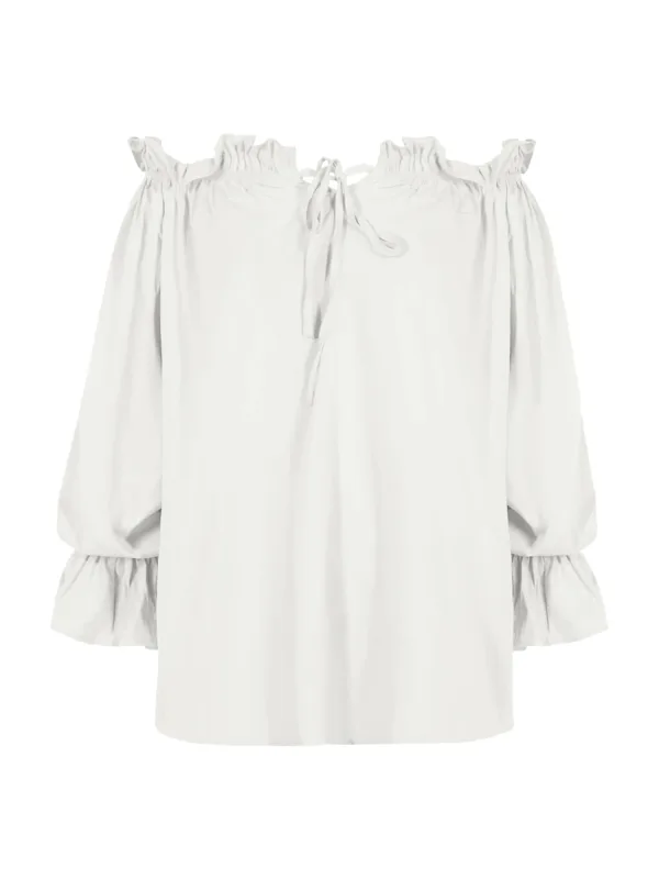 Blouse type: Wijde blouse; Design: Gevoerde zoom/rand; Motief: Effen; Kraag: Zonder kraag; Details: Ruches, Volant, Gedrapeerd; Extra's: Op staal naden; Pasvorm: Losse pasvorm; Armlengte: Lange mouw; Lengte: Normale lengte