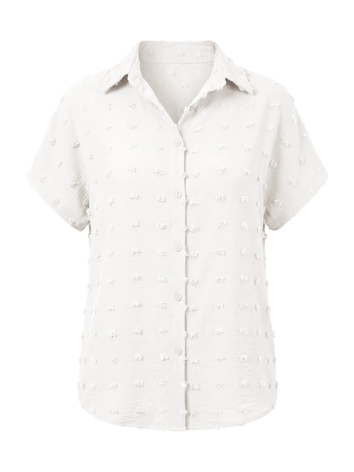 Blouse type: Klassieke blouse; Design: Gevoerde zoom/rand, Knop placket, Rugplooi, Ronde zoom; Type sluiting: Knoopsluiting; Motief: Effen; Kraag: Kentkraag; Details: Plooien; Extra's: Gestructureerd oppervlak, Op staal naden; Pasvorm: Normale pasvorm; Armlengte: Kwartmouw; Lengte: Normale lengte
