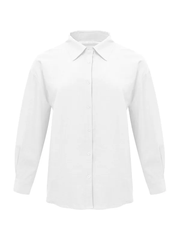 Blouse type: Klassieke blouse; Design: 1-knoops manchetten, Gevoerde zoom/rand; Type sluiting: Knoopsluiting; Materiaal: Katoen; Motief: Effen; Kraag: Kentkraag; Extra's: Voelt zacht aan; Pasvorm: Losse pasvorm; Armlengte: Lange mouw; Lengte: Lange pasvorm