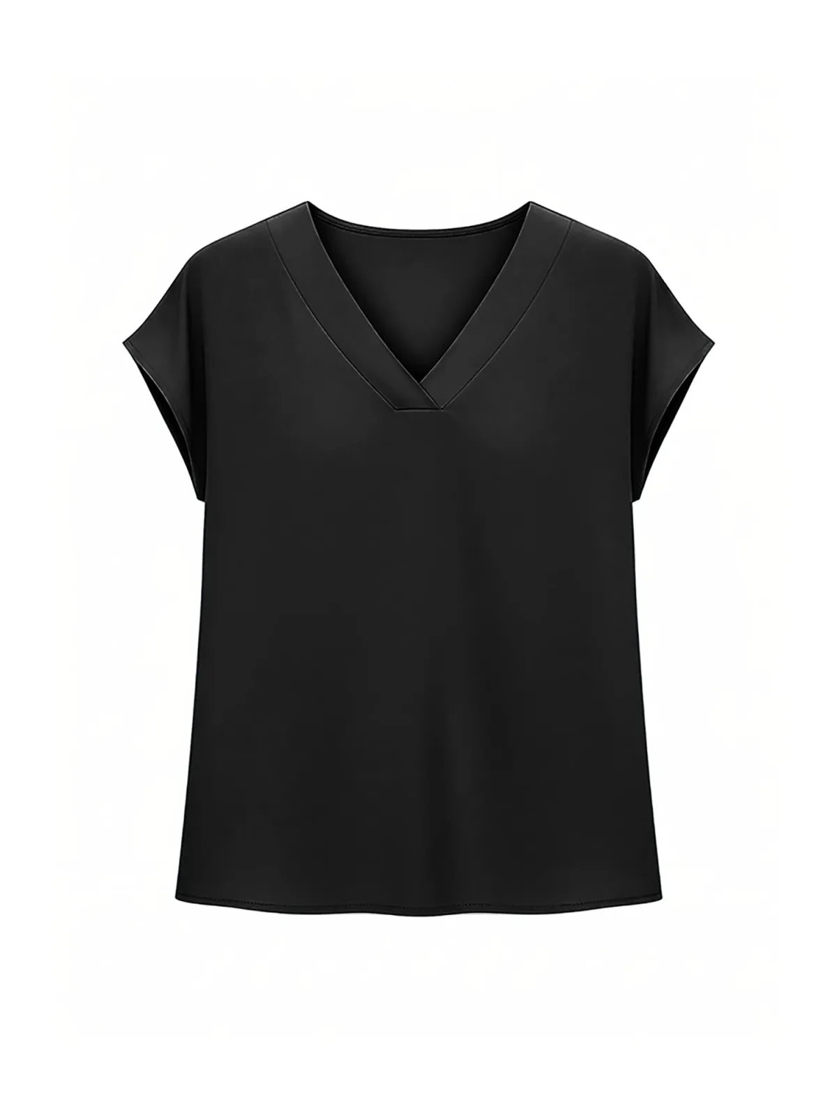 Blouse type: Blouseshirt; Design: Gevoerde zoom/rand, Gesneden mouw; Halstype: V-hals; Motief: Effen; Extra's: Gladde stof, Voelt zacht aan; Pasvorm: Normale pasvorm; Armlengte: Kwartmouw; Lengte: Normale lengte