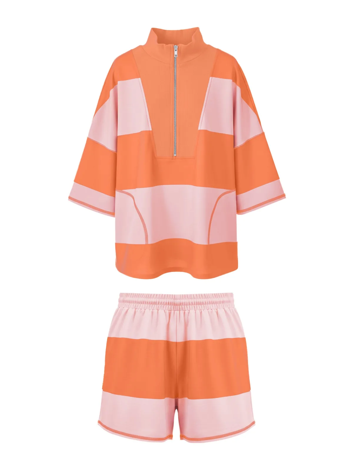 Design: Halve rits; Type sluiting: Ritssluiting; Voering: Niet gevoerd; Materiaal: Jersey; Motief: Gestreept; Extra's: Voelt zacht aan; Lengte: Kort/mini; Pasvorm: Losse pasvorm; Armlengte: Halve mouw; Taillehoogte: Mid waist