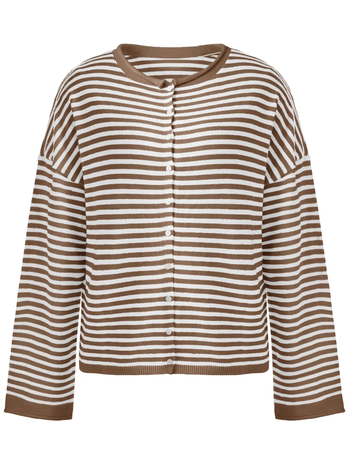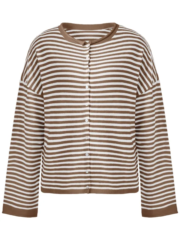 Design: Gerolde boord, Overcut schouder; Type sluiting: Knoopsluiting; Materiaal: Knitwear; Halstype: Ronde hals; Motief: Gestreept; Extra's: Fully fashioned; Pasvorm: Losse pasvorm; Armlengte: Lange mouw; Lengte: Normale lengte