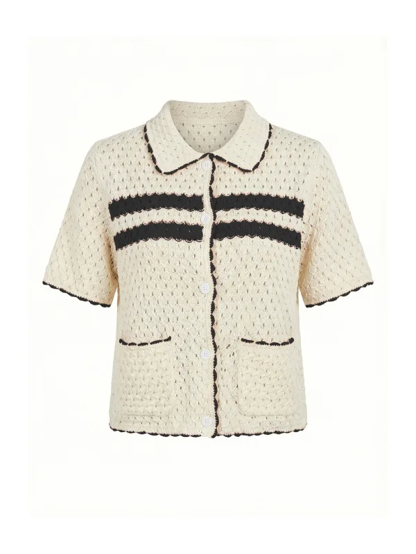 Design: Knop placket, Opgezette zakken; Type sluiting: Knoopsluiting; Materiaal: Knitwear; Halstype: Polokraag; Motief: Gestreept; Details: Mesh; Extra's: Met textuur; Pasvorm: Normale pasvorm; Armlengte: Halve mouw; Lengte: Normale lengte