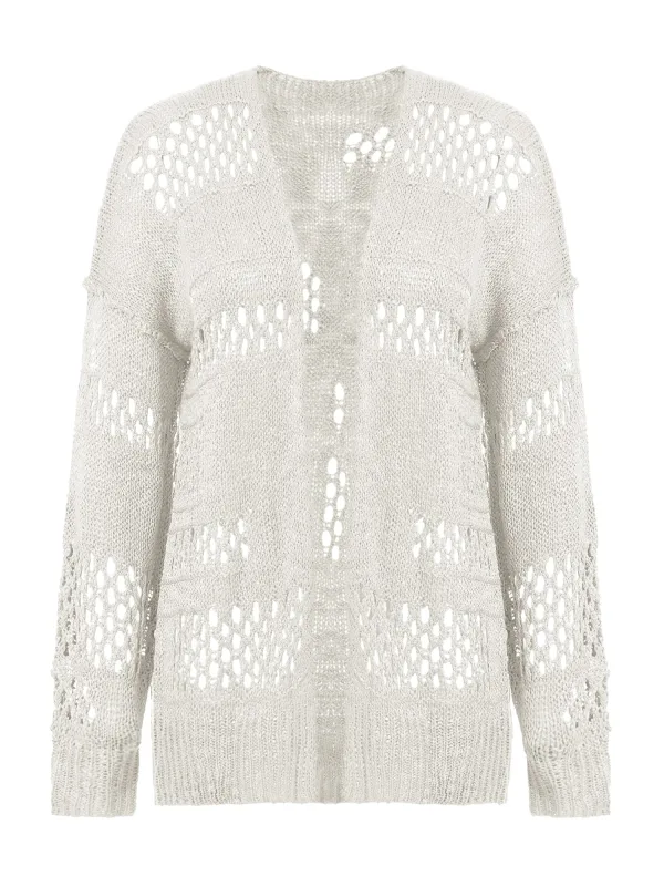 Design: Overcut schouder, Zonder sluiting; Materiaal: Knitwear; Motief: Effen; Details: Mesh; Extra's: Fully fashioned, Met textuur; Pasvorm: Losse pasvorm; Armlengte: Lange mouw; Lengte: Lange pasvorm