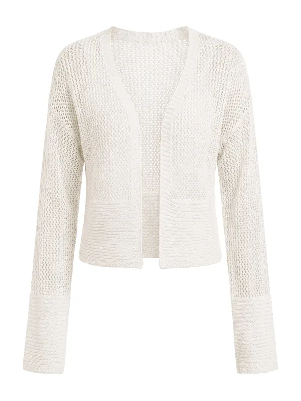 Design: Overcut schouder, Zonder sluiting; Materiaal: Gehaakt; Motief: Effen; Details: Mesh; Extra's: Licht transparant; Pasvorm: Normale pasvorm; Armlengte: Lange mouw; Lengte: Korte pasvorm