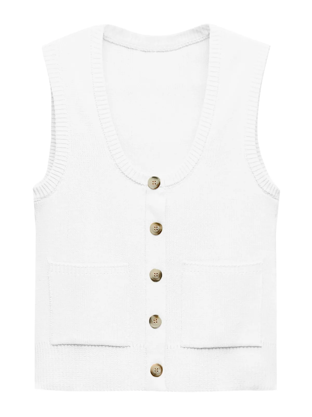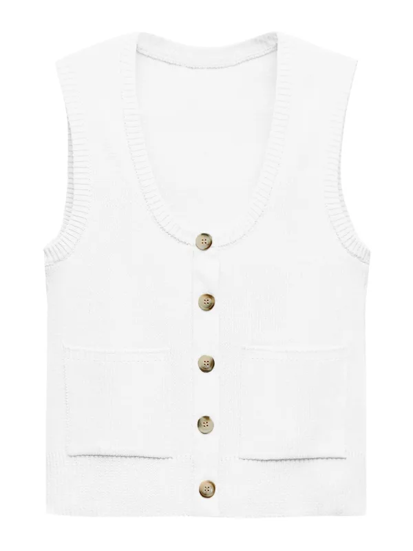Design: Geribbelde kraag, Knop placket; Type sluiting: Knoopsluiting; Materiaal: Knitwear; Halstype: Ronde hals; Motief: Effen; Extra's: Op staal naden, Voelt zacht aan; Pasvorm: Normale pasvorm; Armlengte: Mouwloos; Lengte: Normale lengte