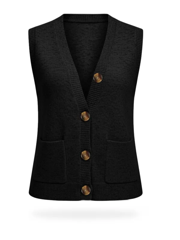 Design: Geribbelde kraag; Type sluiting: Knoopsluiting; Materiaal: Knitwear; Halstype: V-hals; Motief: Effen; Extra's: Voelt zacht aan; Pasvorm: Normale pasvorm; Armlengte: Mouwloos; Lengte: Normale lengte