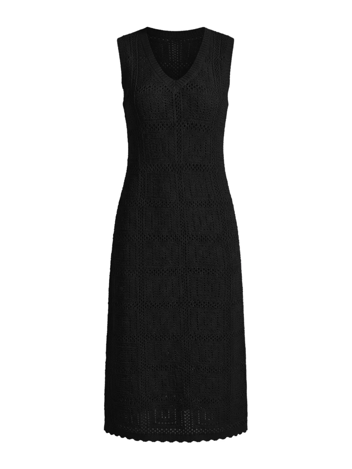 Design: Geschulpte zoom; Materiaal: Knitwear; Halstype: V-hals; Motief: Effen; Soort bandjes: Brede bandjes; Details: Mesh; Extra's: Transparant, Voelt zacht aan; Lengte: 3/4 lengte; Snit: Recht; Pasvorm: Normale pasvorm; Armlengte: Mouwloos