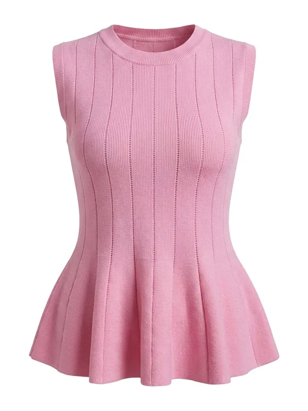 Design: Geribbelde kraag, Geribd ceintuurtje; Materiaal: Knitwear; Halstype: Ronde hals; Motief: Effen; Details: Gedrapeerd, Mesh; Extra's: Voelt zacht aan; Pasvorm: Normale pasvorm; Armlengte: Mouwloos; Lengte: Normale lengte