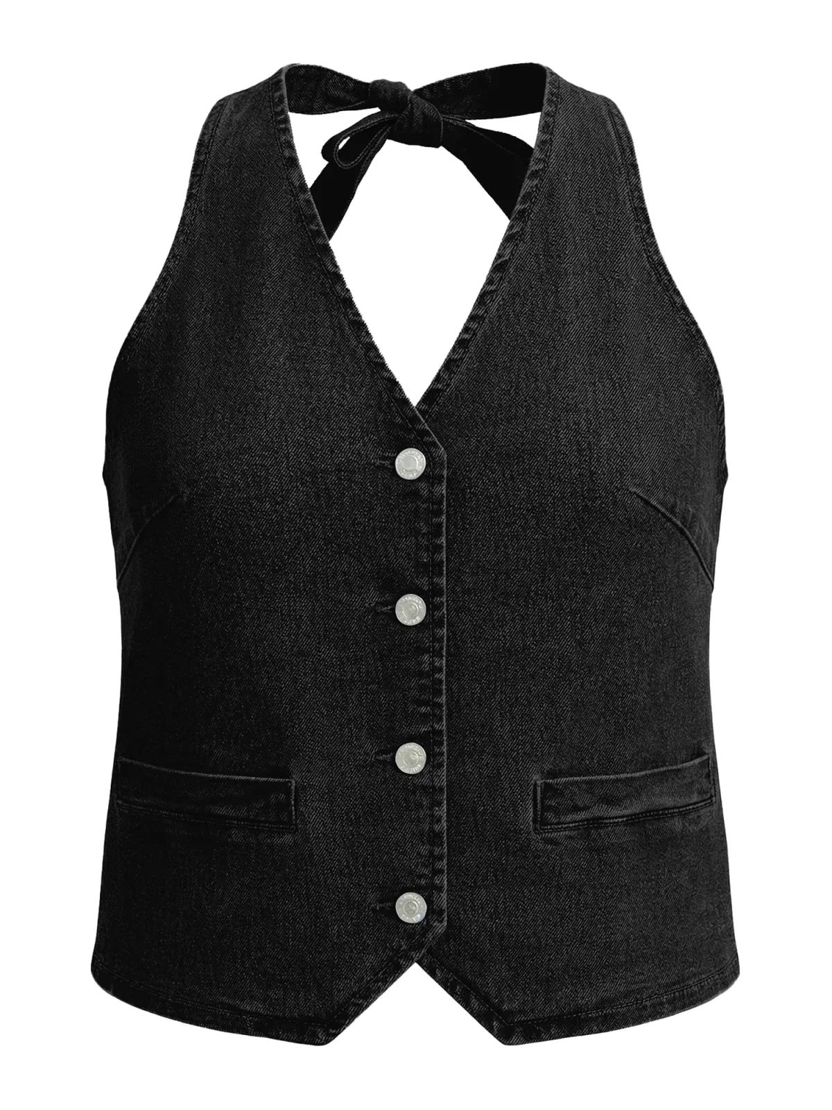 Design: Knop placket; Type sluiting: Knoopsluiting; Voering: Niet gevoerd; Materiaal: Denim; Motief: Effen; Details: Backless; Extra's: Stevige stof; Pasvorm: Normale pasvorm; Lengte: Normale lengte