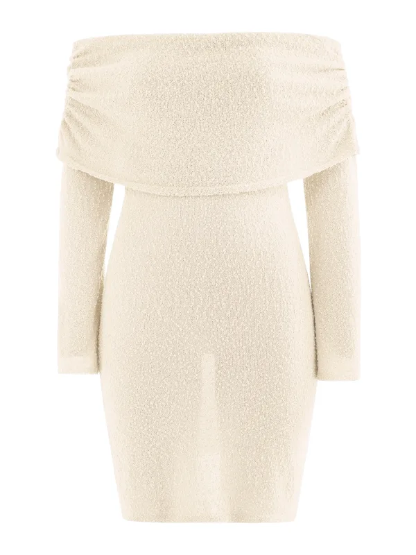 Design: Gevoerde zoom/rand, Strapless/off-shoulder; Halstype: Carmen hals; Motief: Mélange; Extra's: Met textuur; Lengte: Kort/mini; Snit: Figuur omarmend; Pasvorm: Aansluitende pasvorm; Armlengte: Lange mouw