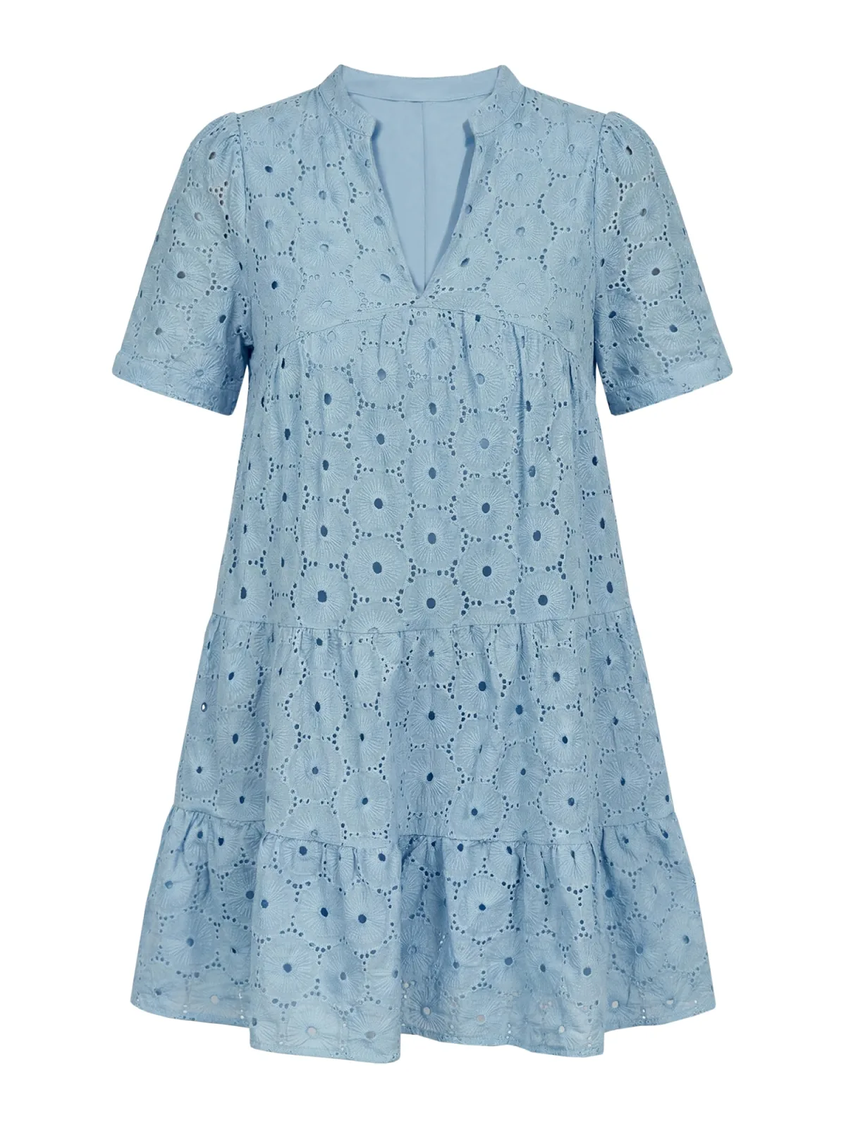 Design: Gevoerde zoom/rand, Met onderjurk; Halstype: Uitgesneden hals; Motief: Bloemenprint; Details: Borduursels, Volant, Gedrapeerd, Mesh; Extra's: All-over patroon, Met textuur, Voelt zacht aan; Lengte: Kort/mini; Snit: Uitlopend; Pasvorm: Losse pasvorm; Armlengte: Kwartmouw